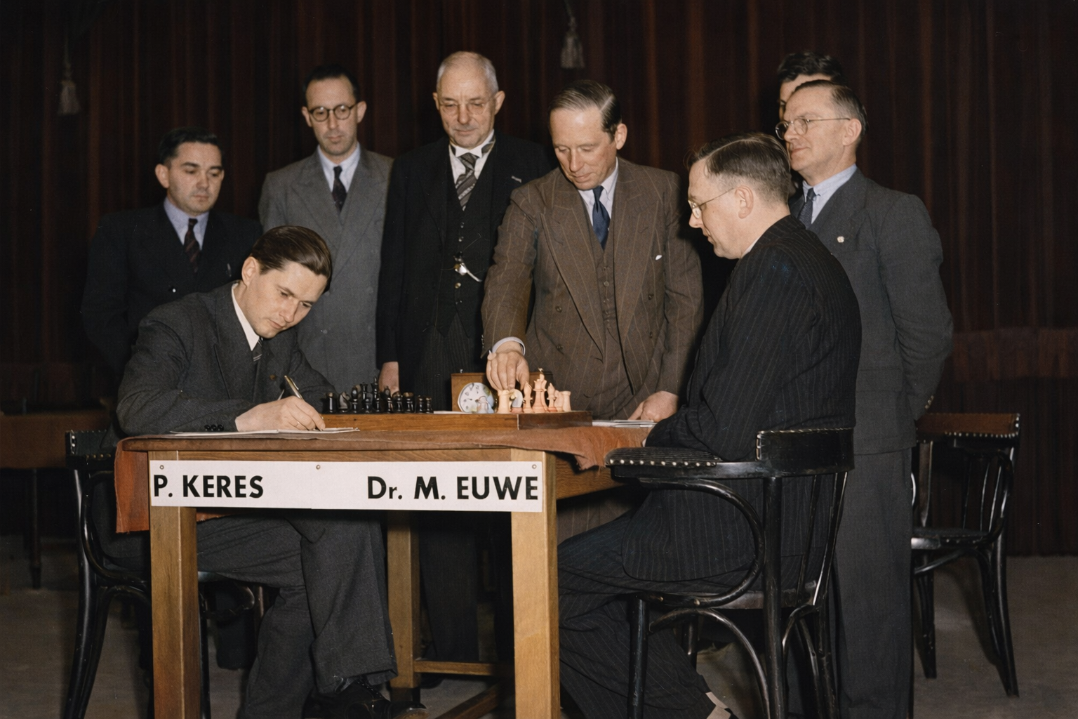Keres’s breakthrough on the world stage came in the mid-1930s. At 19, he debuted for Estonia on top board at the 1935 Warsaw Chess Olympiad, dazzling observers with a bold attacking style. Over the next few years he amassed a string of international successes against elite competition. Notably, he tied with former World Champion Alexander Alekhine for first place at Bad Nauheim 1936, and won the prestigious Semmering–Baden tournament in 1937 ahead of luminaries such as José Raúl Capablanca, Reuben Fine, and Samuel Reshevsky. In 1938, Keres confirmed his status as a world-title contender by triumphing (on tiebreak) at the legendary AVRO tournament in the Netherlands, an all-star double round-robin often considered one of the strongest tournaments ever held. Keres went undefeated at AVRO and scored 8½/14, finishing ahead of no fewer than four world champions (including Botvinnik, Euwe, Alekhine, and Capablanca). This victory made him the “natural successor” to World Champion Alekhine in the eyes of the chess world. Plans were laid for a Keres–Alekhine championship match, but the outbreak of World War II and geopolitical turmoil intervened, scuttling those negotiations.