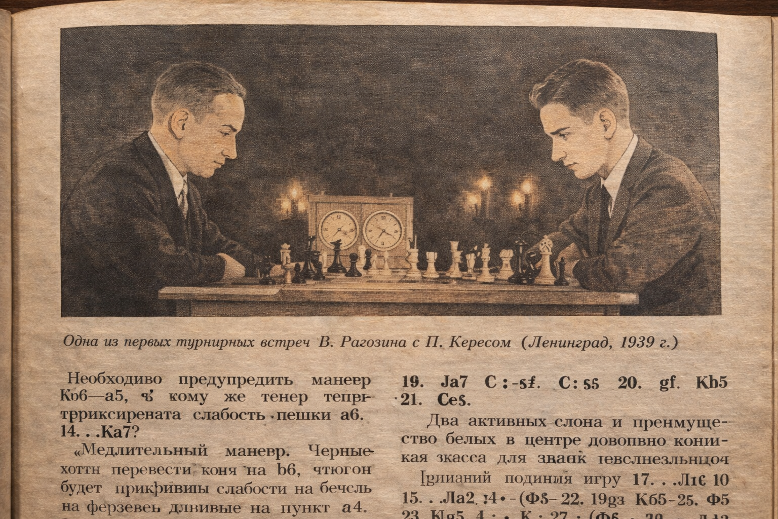 During the 1930s, Ragozin rose steadily through the strongest Soviet and international tournaments. He played in the great Moscow tournaments of 1935 and 1936, defeating major opponents and earning admiration for his tactical sharpness and foresight. By the end of the decade, he had become one of the most respected players in the Soviet Union. The 1939 image with Paul Keres captures this exact phase: Ragozin had moved beyond promise and into the company of Europe’s leading masters. His performances showed that he was not merely a capable competitor, but a player of real originality, able to combine deep calculation with active, energetic play.